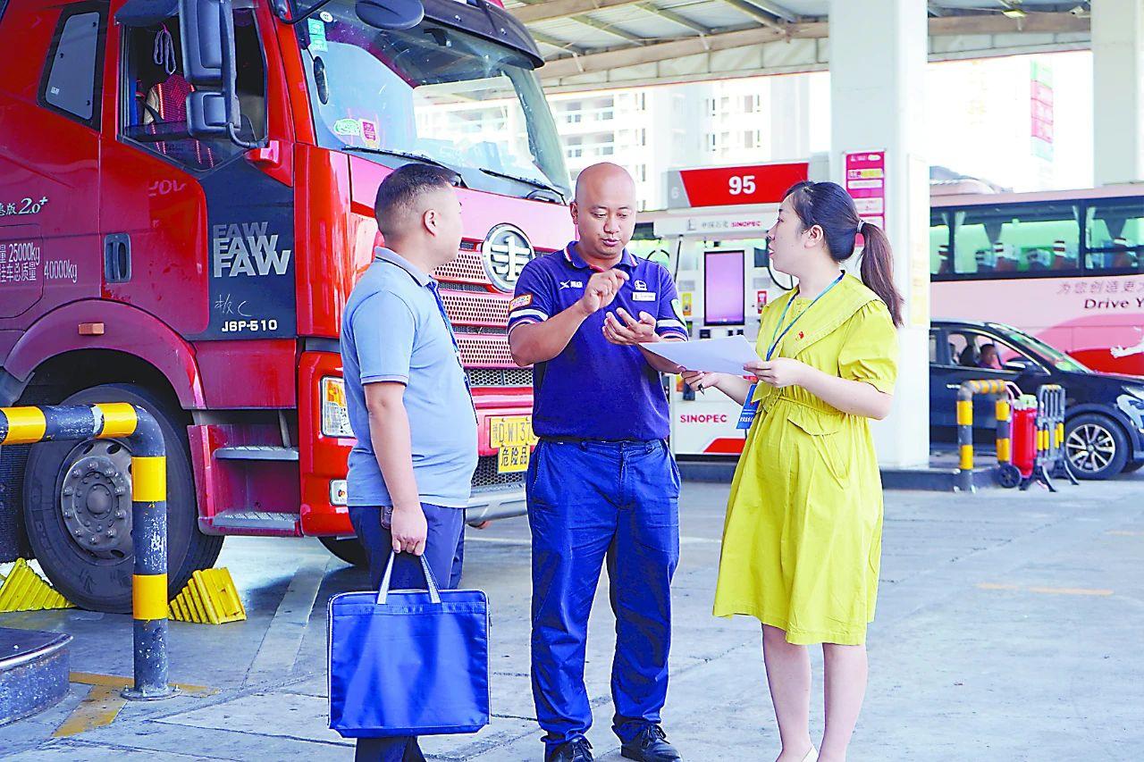 (重庆市秀山土家族苗族自治县纪委监委紧盯“车轮上的腐败”,采取实地走访、翻阅台账、抽查比对等方式开展专项监督检查,着力发现私车公养等问题。图为近日,该县纪检监察干部在城区加油站了解情况。严丽 摄)