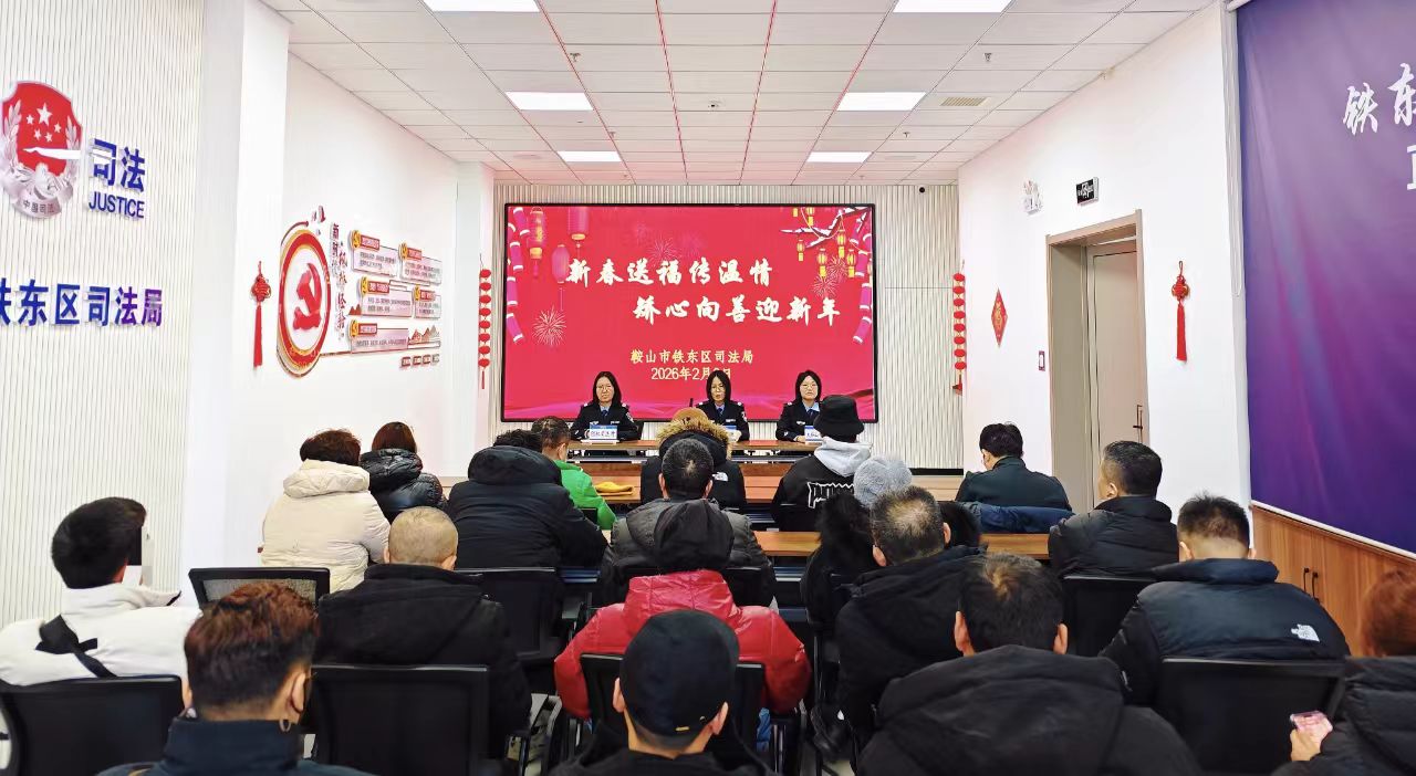 新春将至,年味渐浓。为深入学习贯彻习近平法治思想,严格落实省司法厅、市司法局关于2026年春节期间社区矫正安全稳定工作的系列部署要求,铁东区司法局坚持政治引领,以“严管有尺度、关爱有温度”为导向,组织开展社区矫正集中教育暨“新春送福”主题活动,切实筑牢安全防线、传递司法温情。